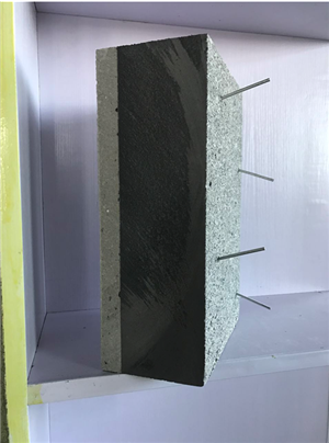 (8)保溫一體板當(dāng)外膜板使用,施工結(jié)束時(shí)不拆除,澆筑混凝土?xí)r只澆筑鋼絲透出保溫一體板的一面,并通過(guò)錨栓或斜插絲捆綁混凝土鋼筋籠上連接使其更加安全可靠,斜插絲接觸不到鋼筋籠的只現(xiàn)澆混凝土不捆扎,還可以每平方將增加2個(gè)U型鋼筋穿透保溫板將露出保溫板的鋼筋捆扎在混凝土的鋼筋籠上,進(jìn)行加強(qiáng)牢固性,具有極佳的可靠性。